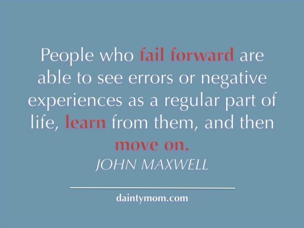 Never fear. Know that you can always start over. Tomorrow starts the beginning of a new month. I read a book called Failing Forward by John Maxwell. It was an inspiring book about how to use your failures to move yourself forward. Learning how to turn negative experiences into something positive. Life is about change and creating change too.