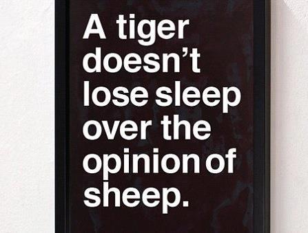 We should never allow the opinions of others make us lose who we are or what we are striving towards. Stay focused and remain on the path you have decided to take regardless of what the sheep are telling you to do. A tiger wouldn’t worry about the sheep. Why should you?