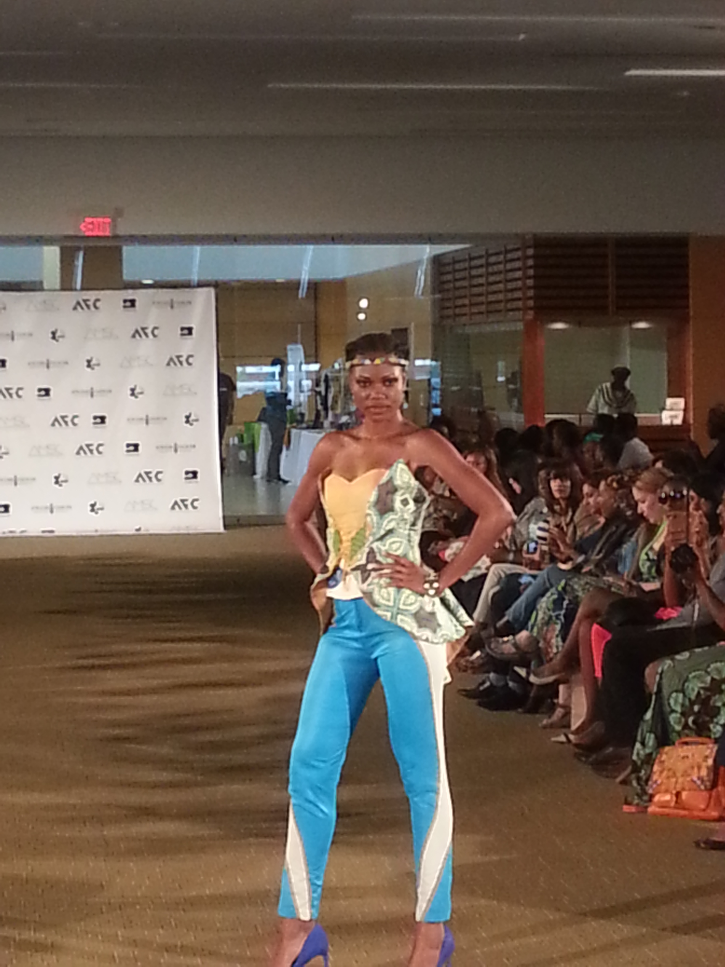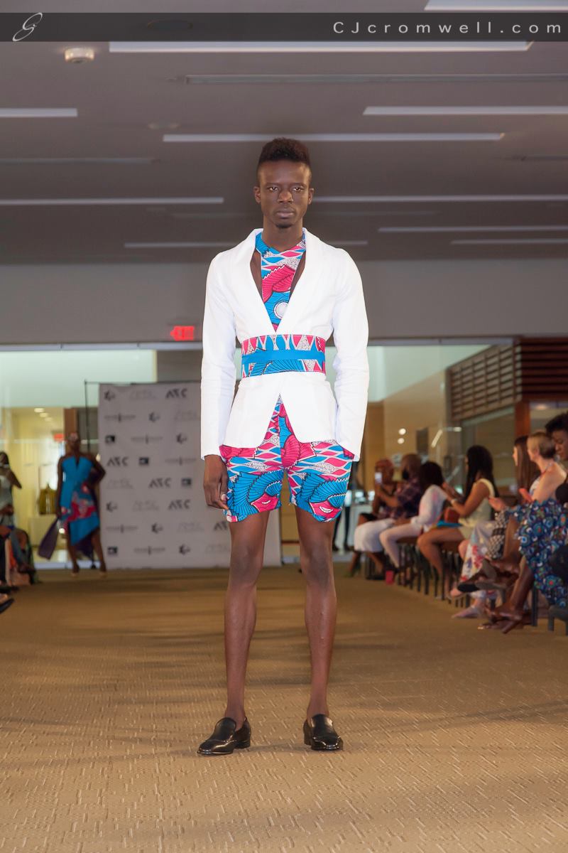 Kadeem Faustin is a new designer with St.Lucian heritage who launched his first collection at AFWT last year. This time around his label Kyle Gervacy is inspired by geometry and shapes. Plenty of bold colour and an interesting mix of patterns were prevalent. “When I see a print it inspires me to do a lot,” Faustin said backstage while steaming garments before the show. His collection showed a youthful vibrancy that many are craving for in African inspired fashion. It’s not just about tradition but finding a way to push it in a new modern direction.