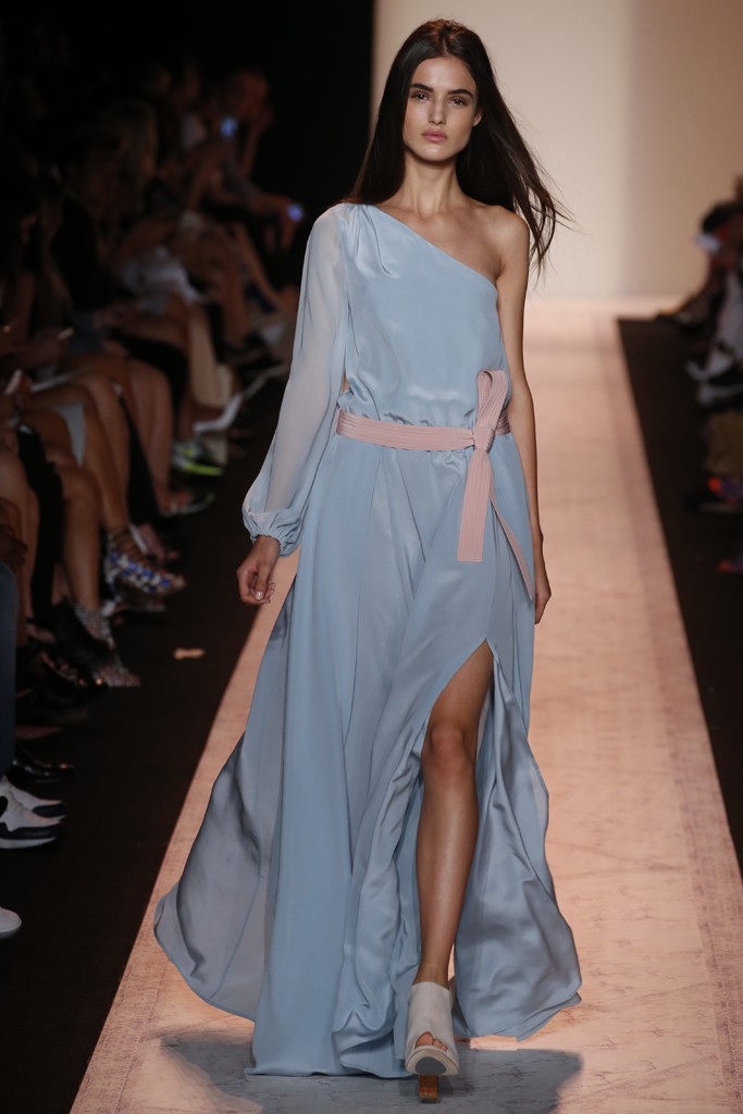 Day one is over at New York Fashion Week’s spring 2015 collections. One of the highlights was the BCBG Max Azria show. The collection’s colour palette was soft; white, rose and powder blue. Even the patterns and subtle stripes were delicate and not overpowering. It was a simple collection with fluid, carefree pieces that conjure up the idea of effortless style. None of the pieces were big stand-outs in this collection. Rather they all had a sense of connection with a central theme of muted tones and fluid silhouettes.