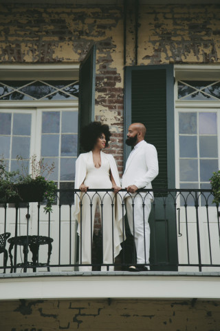 Solange Knowles was married this past weekend in New Orleans to video director Alan Ferguson. The singer is known for dancing to her own beat when it comes to fashion and she didn’t break that tradition on her wedding day. The wedding festivities began on the Friday night with guests attending a movie night to see a film the couple watched on their first date, Mahogany. The pair arrived for their ceremony on white bicycles which added an element of simplicity, yet was such a romantic way to make an entrance. Unfortunately the groom’s bike ended up with a flat tire and he had to walk his bike the rest of the way. Solange wore a low-cut, cream coloured jumpsuit with a split-back cape by Stephane Rolland. Her groom donned a white suit.