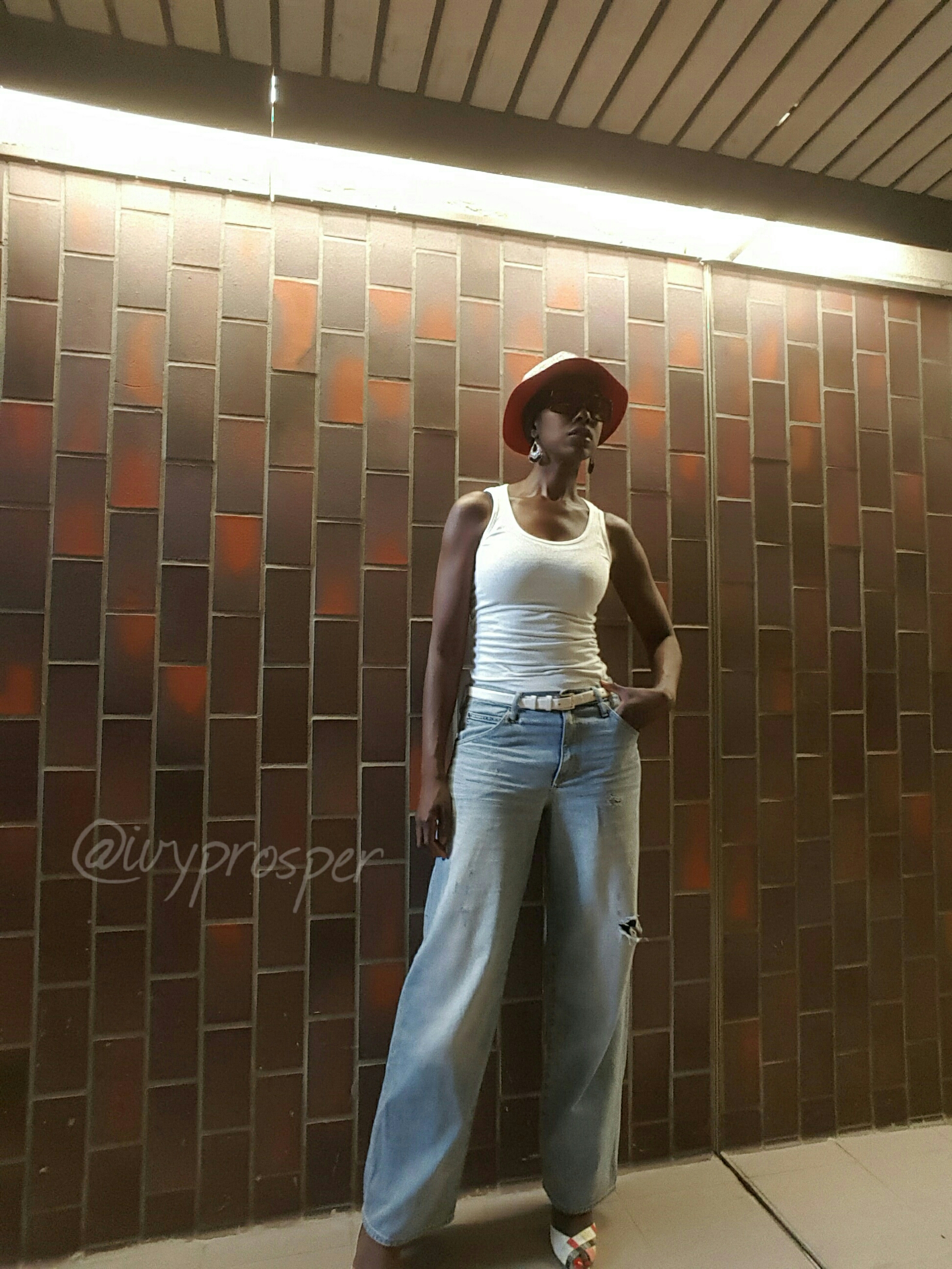 This outfit is one for a casual day. So comfortable and effortless. The Wide Leg Distressed Denim in X-tall from The Gap, worn with a basic white tank top you can find these anywhere! My hat is from Wal-Mart and the shoes I’ve had more than five years are Abaeté for Payless.
