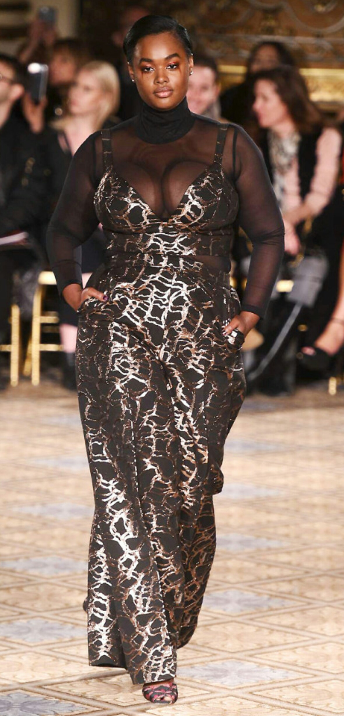 His collection stayed true to his design aesthetic by mixing luxury items with middle priced pieces. With many of his evening wear looks shown on plus size models it opens the doors for more designers to embrace the idea of showing elegant gowns on fuller figures.