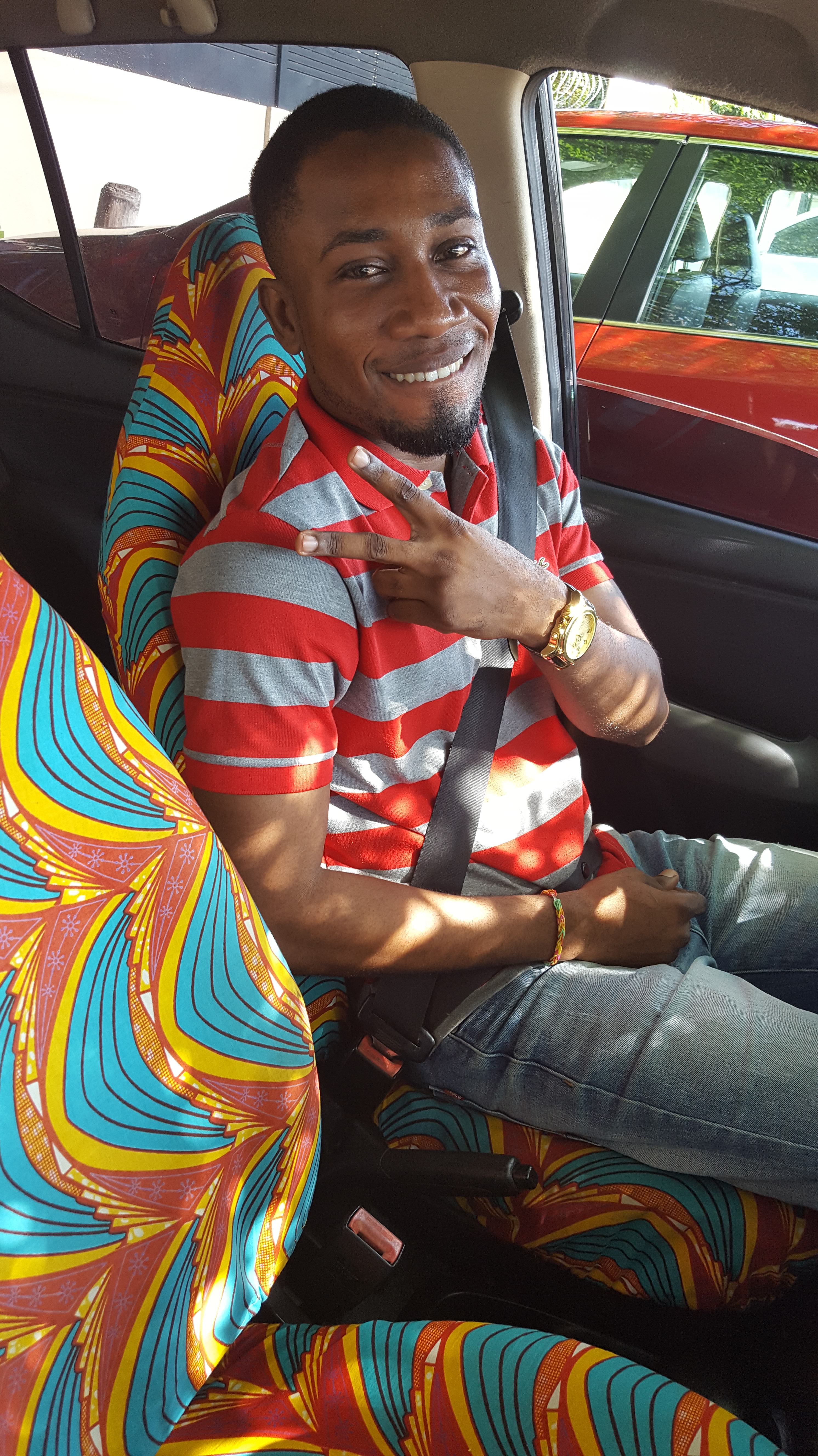 Some drivers are very friendly. Like Raymond, pictured above. I was so impressed when I stepped into the car to find it clean and nicely decorated with the African printed seat covers and colorful cushions.