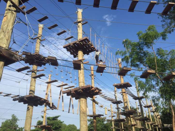 A few months ago our production team went on an excursion to partake in a team building exercise. Our boss wanted us to take the challenge of doing a ropes course that is relatively new in Accra at the Legon Botanical Gardens. When we arrived and I looked up at the course, I was actually thinking it didn’t look as bad as I expected, but I knew it was going to be a challenge because I’m afraid of being at such heights harnessed in something that seems unstable. I’ll never forget my fearful walk at Kakum National Park in Ghana’s Central Region. (Click here to see)The first time I didn’t make it. The second I conquered my fear.