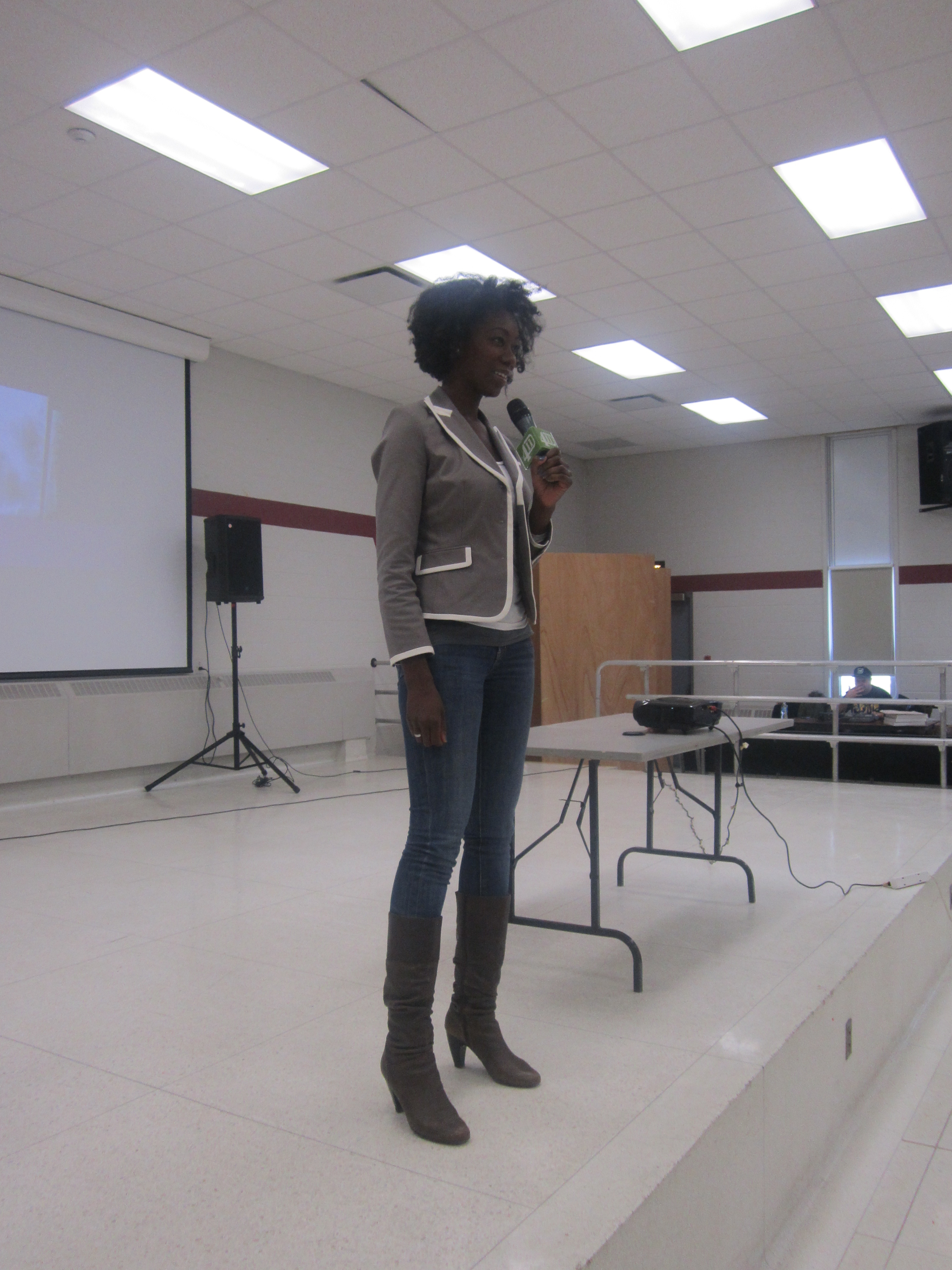 Hosted African Fashion Industry Awards in Toronto. (Photo by Mastering Image)Ivy was the Host and a speaker at the 411 Initiative for Change events where she travelled to schools in Canada inspiring young women.Speaking to students in Essex County during 411 Girls Tour.
